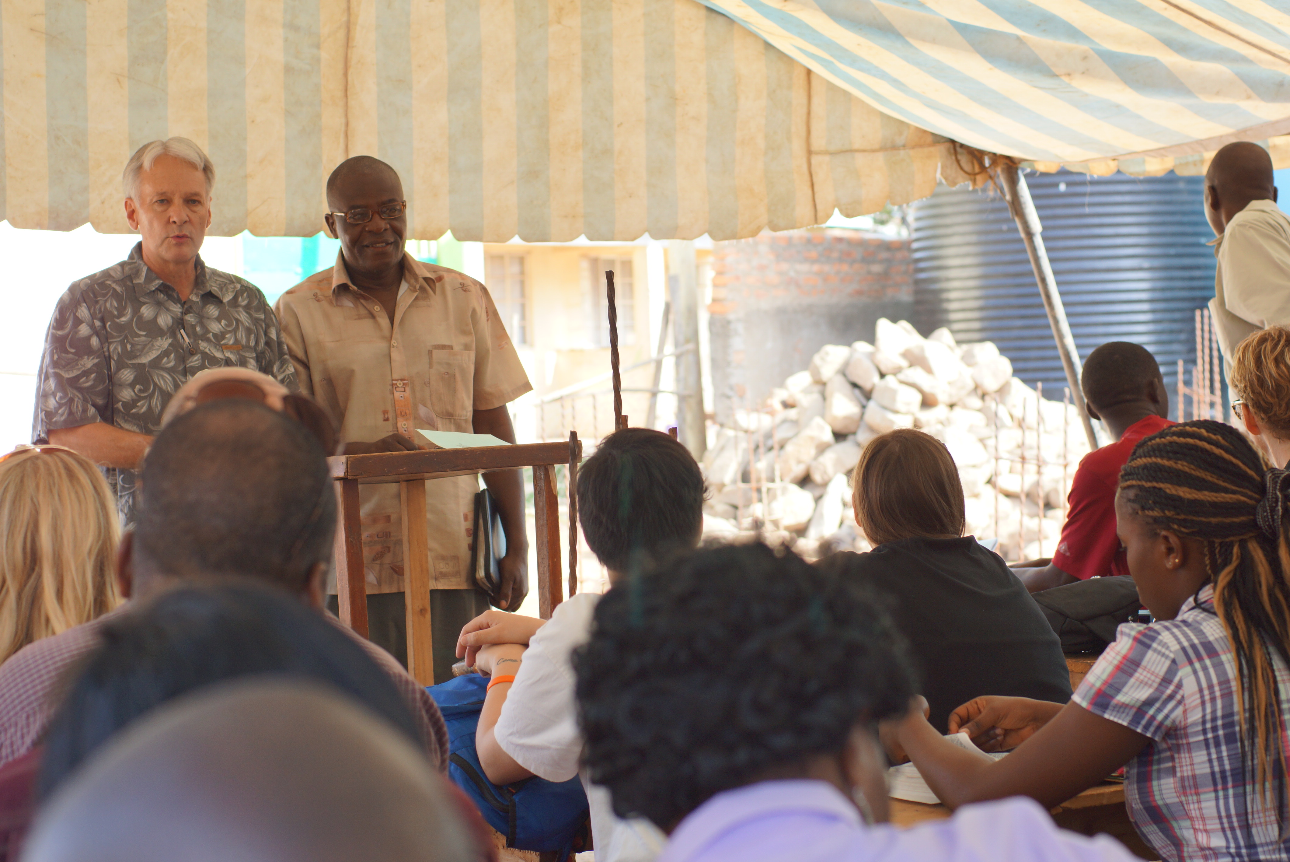 requests. Having gone too far to quit now, I wade in deeper and George and I learn quickly this dance of sharing a sermon in two languages. He mimics my inflection, he gets excited when I do. He sometimes uses 20 words for my one, and occasionally one for my twenty. It’s interesting, and the crowd is riveted. I must be quite the oddity, or entertainment must be in short supply in Nyalenda; perhaps both! I’m thankful for the 20-plus other white faces in the crowd. They look out of place here too; at least I am not alone!